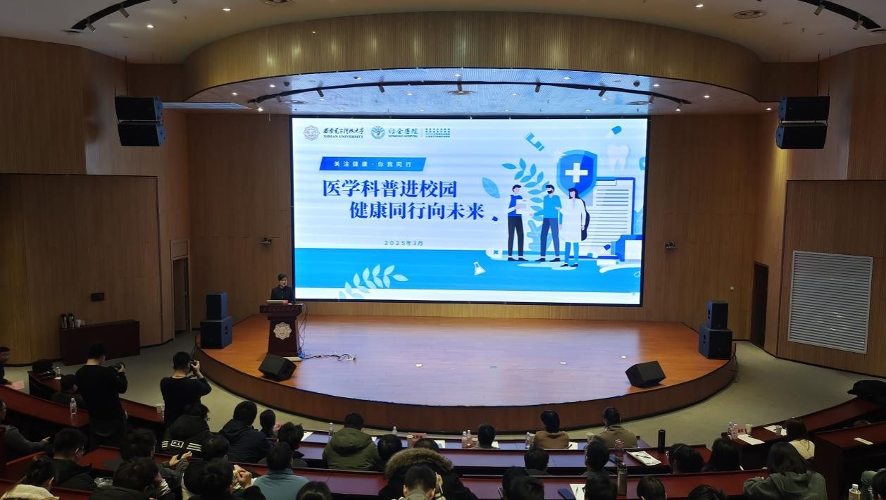 (通讯员 边晟世)为提升师生健康意识,普及医学知识,助力校园健康文化建设。3月7日下午,由校工会、西安市红会医院主办,大红鹰会员登录中心承办的“医学科普进校园 健康同行向未来”活动如期开展。此次活动特邀西安市红会医院权威专家团队,为师生们呈上一场兼具科学性与实用性、生动且有趣的健康知识盛宴。活动由大红鹰会员登录中心党委书记杨生海主持,学校百余名师生代表参加此次活动。
