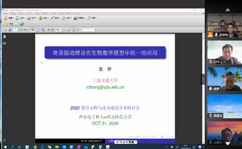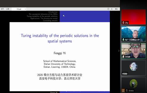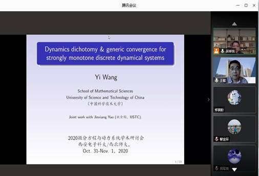 为了交流微分方程与动力系统及相关领域的最新研究成果和学术发展动态,促进学术交流与合作,西安电子科技大学与西北师范大学于2020年10月31日-11月1日通过腾讯会议平台联合举行“2020微分方程与动力系统学术研讨会”网络在线学术会议。25位微分方日程与动力系统领域的著名专家学者特邀报告人,以及来自国内多所高校科研院所的190余名代表参加了此次盛会。