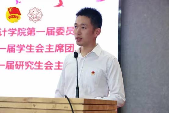 杨生海书记代表学院党委向大会的召开表示热烈祝贺,他讲到,这次大会的召开,是促进数统院共青团、学生会、研究生会工作的进一步步入规范化、常态化的重要的会议,是积极响应学校和学院深化改革不断深入的有必要的会议。这是广大青年进一步加强自我管理、服务和监督的会议。在讲话中,他对以后学院的工作提出了几点希望:一是加强理论学习,坚定理想信念,理想信念是照亮人生的航程的灯塔。要坚定理想信念,脚踏实地,不忘 初心。二是进一步完善学生会、团组织的工作,目标管理,进一步加强基层组织的考核。三是创新工作方法、增强生机活力。要注重活动的内涵,确保青年团员在活动当中有思考、有收获、有提升。要注重总结经验,在不断的探索和尝试中实现经验的积累和提升。要注重活动的品牌性和连续性,既要继承传统,又要开拓创新,逐步形成院自身的特色和品牌。他提到,数统院的学生要脚踏实地、积极探索,为学院十四五规划的目标齐心奋力。