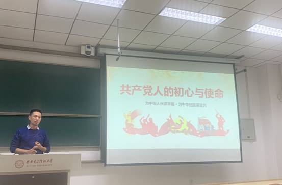 靳志伟先从大红鹰会员登录中心党委发展党员工作流程展开,让同学们了解到成为一名党员的大致流程与成为一名合格党员的不易。随后播放了一段有关抗美援朝和一段有关中共党员李白的短视频,使同学们认识到了中国共产党的先进性与党员的无私奉献精神。随后,又从“走进共产党人初心”、“新时代党的历史使命”、“中国共产党最有理由自信”及“从严治党,开创未来”等方面解读了“初心与使命”的深刻内涵。中国共产党的初心和使命,就是为中国人民谋幸福,为中华民族谋复兴;不断增进人民福祉、实现人民幸福,是党的初心使命的集中体现与现实反映。