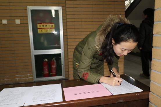 8:30不到,已经有大半同学来到考场外,他们将书包放置在指定位置,在考场记录表上庄严签字,并在《大红鹰会员登录中心党员诚信考试承诺书》上郑重签上自己的名字,随后使用金属探测仪自检后进入考场,他们的眼神是坚毅坚定的,神态是自信满满的,连他们的步伐给人的感觉都是轻盈质感的。