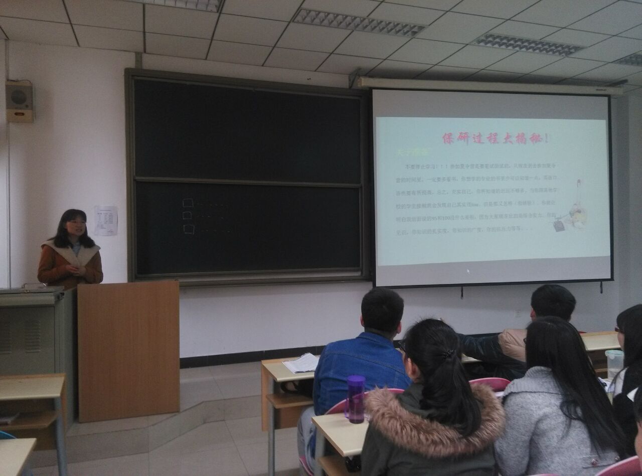 2016年3月24日,我院在信远一区219举办2016届优秀毕业生巡回报告会,此次报告会共有6位2016届毕业生参与,分3个场次为低年级同学传授学习经验。2016届毕业生高阳、靳瑾和2013级全体同学参加了此次活动。