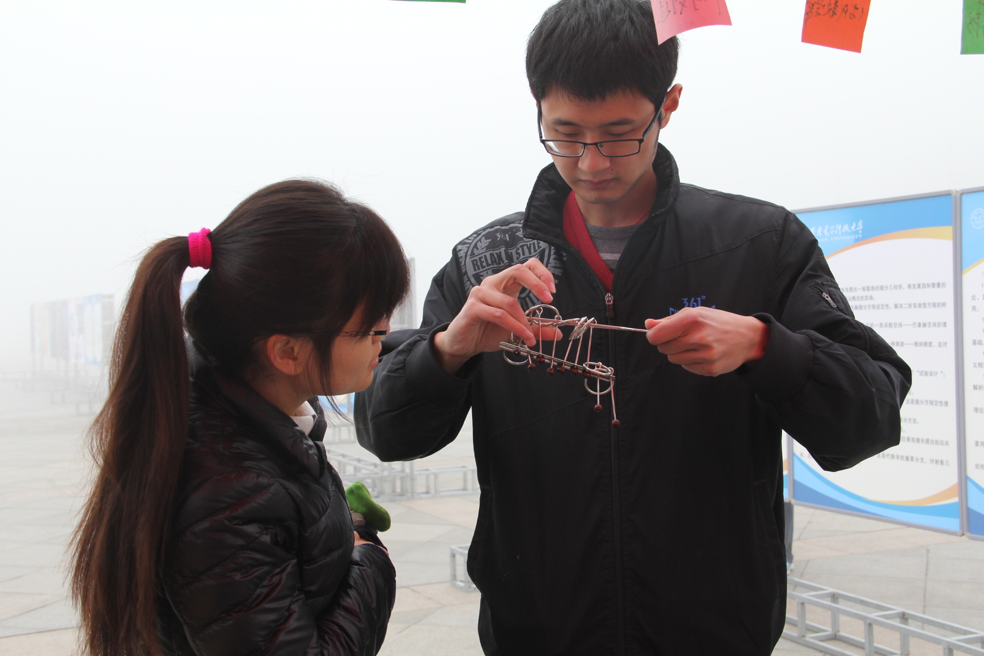 本次展览主要通过展板形式,配合现场讲解,介绍古今中外著名数学家的名人轶事和成就、著名数学定理的由来和内涵、工程领域数学的重要性和应用、数学与其他学科的联系等知识。同时还举行了内容丰富的数学类益智游戏和比赛,如九连环、华容道、魔方大赛、数学灯谜以及数学知识竞答等。游戏比赛区域人头攒动,获胜者还能得到我院同学自制的数学书签及数学书籍等精美纪念品,同学们展现出了极大的参与热情。