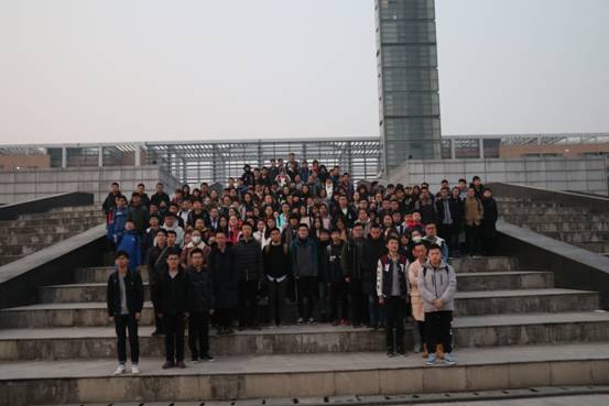 七点整,升旗仪式正式开始。两个学院17级本科生全体成员噤声、立正、肃容,目迎国旗护卫队成员护送国旗入场。护卫队步伐一致,铿锵步声如沸腾的鼓点,与数百名青年的心跃动在一起。随后,雄壮的国歌响起,鲜艳的五星红旗冉冉而升,全体成员行注目礼,全场庄严肃穆,热烈而浓烈的爱国情怀驱走了冬日清晨的阵阵寒意。