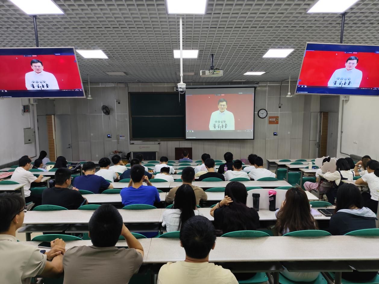 为进一步增强同学们对学校的归属感、认同感和荣誉感,厚植科技报国情怀。9月6日,学校在南校区远望谷举行2024级学生开学典礼,学院2024级研究生在B楼216分会场同步参加开学典礼。开学典礼在庄严的国歌声中拉开序幕,师生们通过直播画面,仿佛置身于主会场之中,与校领导、师生代表们同频共振,共同感受着那份激动与自豪。同时,大家也深受鼓舞,纷纷表示将以更加饱满的热情和更加坚定的信念,携手并进、再创辉煌!